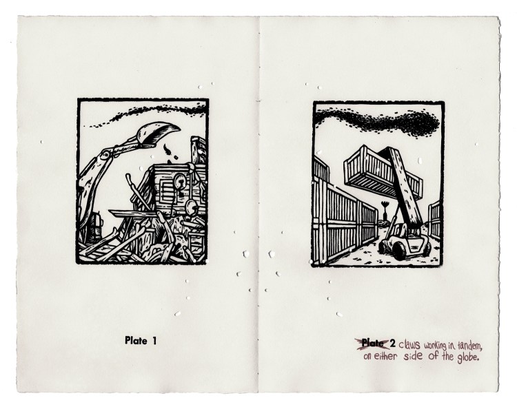 Two Claws, linocut, letterpress, screenprint and lasercut, 11” x 14”, 2023